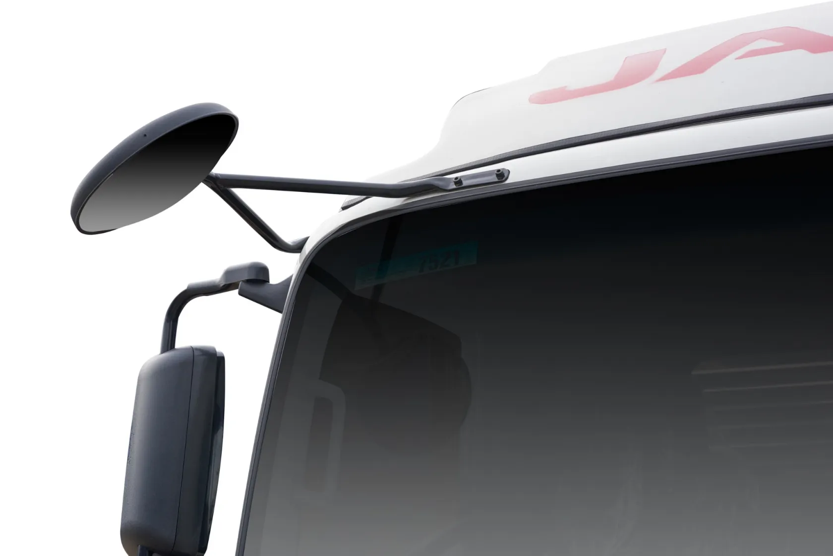Ngoại thất sang trọng, lái xe an toàn: Xe tải JAC N35S được thiết kế tạo hình kiểu dáng hiện đại, sàn Cabin rộng rãi, thân thiện với lá xe và hành khách.  Hệ thống hỗ trợ lái xe gương chiếu hậu nâng cấp phiên bản mới giúp tầm nhìn rộng hơn, quan sát tốt hơn. Kính gió lớn hơn với 1/3 diện tích phía trên chống phản chiếu và làm dịu mát không gian bên trong Cabin. Kính chiếu hậu cũng được cải tiến với kiểu kính đôi, quan sát trên dưới và phía sau đầy đủ, rõn ràng hơn.